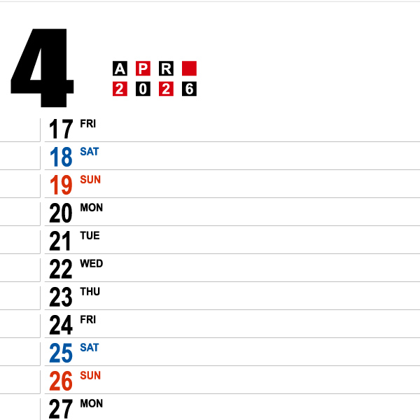 ・品番:105400 4月から始まる卓上カレンダー2026年度版