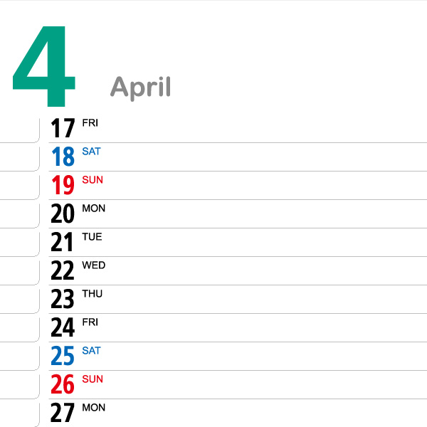 品番:115792 ペーパーリング4月始まりカレンダー