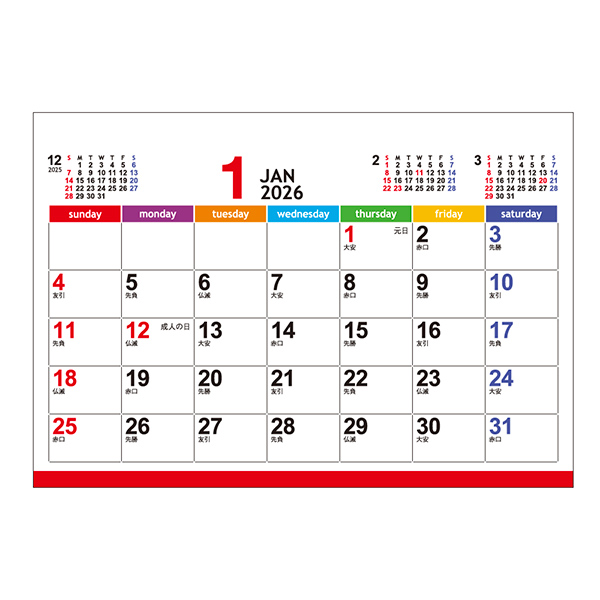 2025年版卓上カレンダー「セブンデイズセブンカラーズ」。