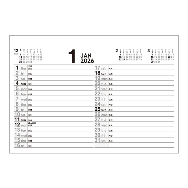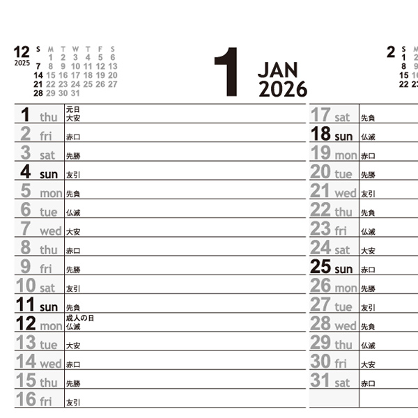 ボールペンなど筆記用具のインクがのりやすく、楽にスケジュールを書き込める、カレンダーに最適の用紙です。