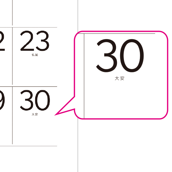6週表示でも5週表示と変わらない大きなメモスペースで月末のスケジュール管理が充実します。