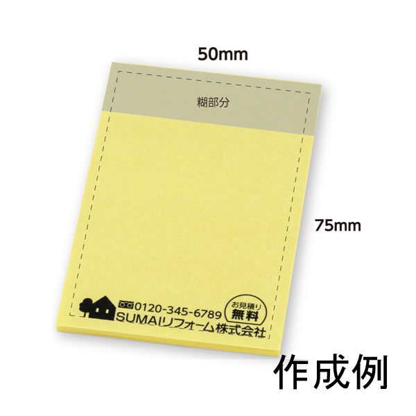 品番:115916 全ページ印刷 カバー無し付箋B(50枚綴り)縦75×横50mm【名入れ専用 版代・1色印刷代込】