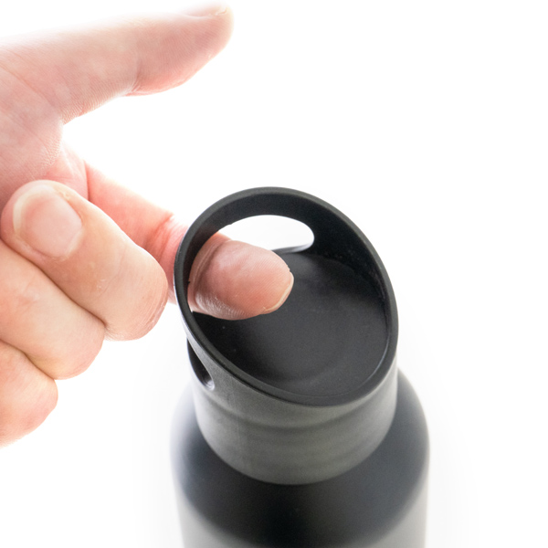 指に掛けて持ちやすいキャップ構造で、アウトドアやスポーツ時の水分補給や普段使いにもちょうどいいサイズ感です。