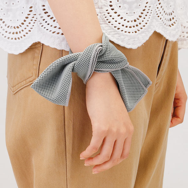 首に巻くのに丁度いいサイズ。手首に巻きつけても使用できます。
