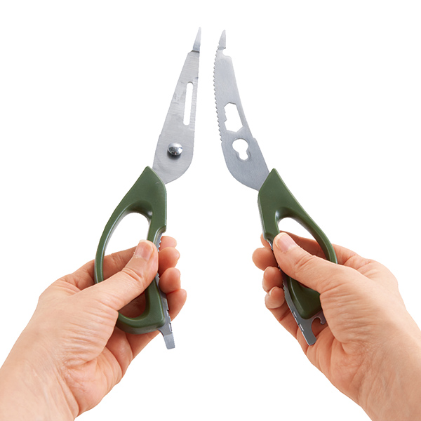 【機能】ハサミ、ナイフ、トング、ウロコ取り、レンチ、皮むき、くるみ割り、