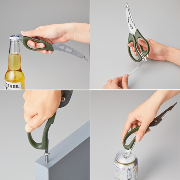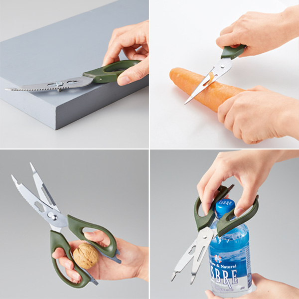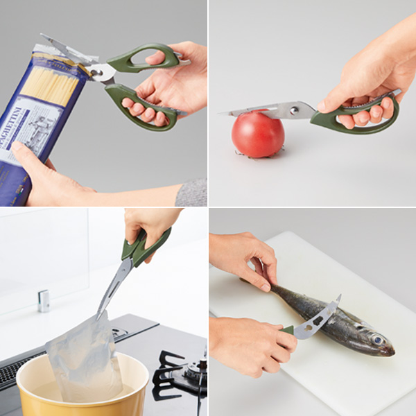 はさみだけでなく、トングや皮むきなど様々な用途でお使いいただけます。