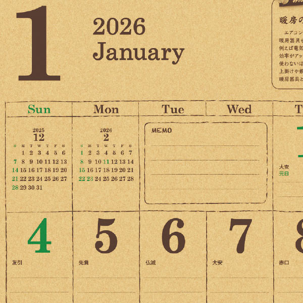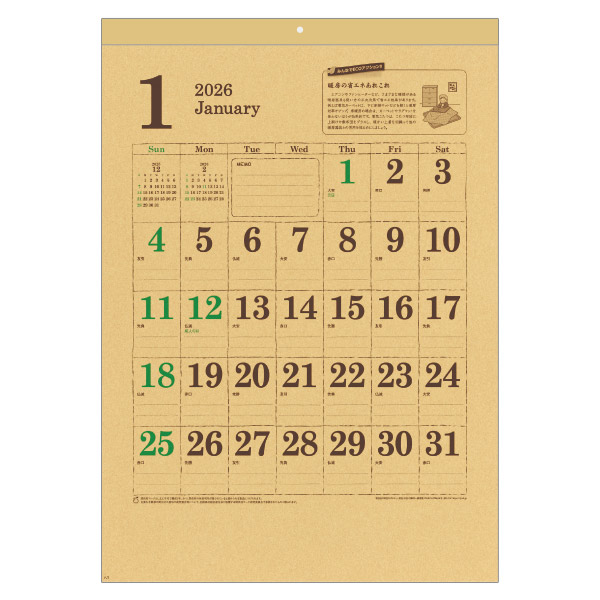 壁掛けカレンダーの金具部分を使用しない「ホットメルト製本(紙製本)」。