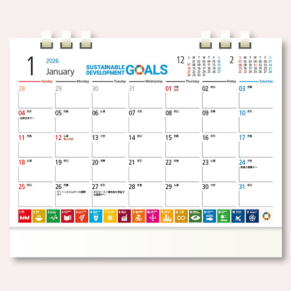 SDGsに向けられた卓上カレンダーは、企業のSDGs広報、宣伝ツールや販促品としてご活用いただけます♪