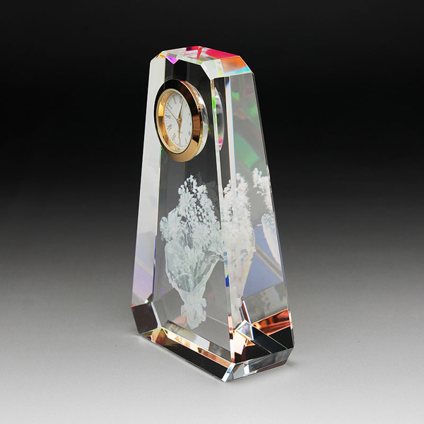最先端のレーザー光線技術で、クリスタル内部にモチーフを立体的に彫刻したクリスタル製置時計です。