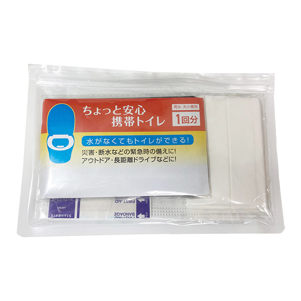 携帯用トイレ1回分が入っているため避難施設でもすぐにお使いいただけます。