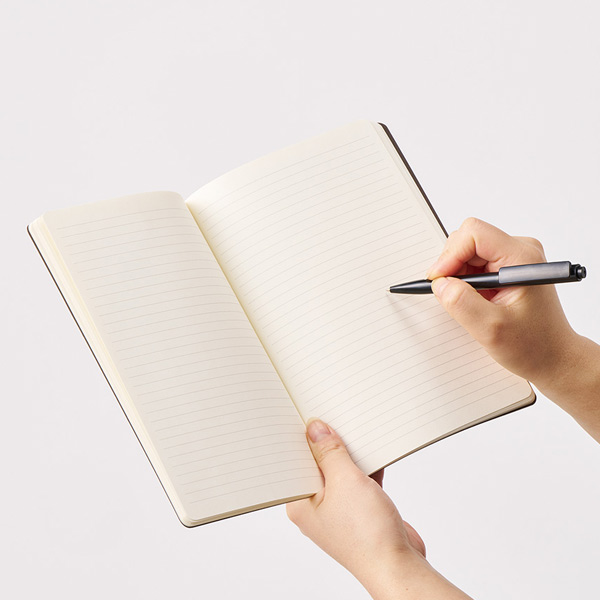 また、既存のリサイクルノートにあった製本テープがなくなり、見た目の一体感が生まれて、よりスタイリッシュな印象になりました。