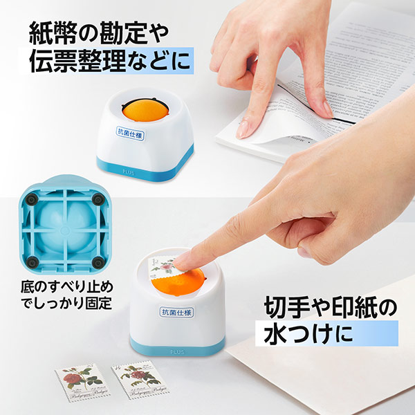 水に浮かべたボールを回すだけで、指先に適量の水をつけることができます。