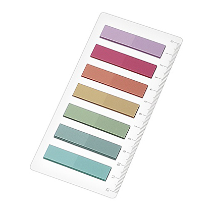 ふせんがついている台紙部分は長さが測れるようになっているので、1つ机の引き出しにあると重宝します。