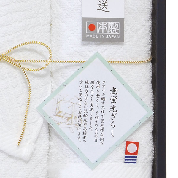 品番:119710 今治純白やわらかやさしい無蛍光晒し タオルセット(フェイスタオル1枚、ハンドタオル1枚)