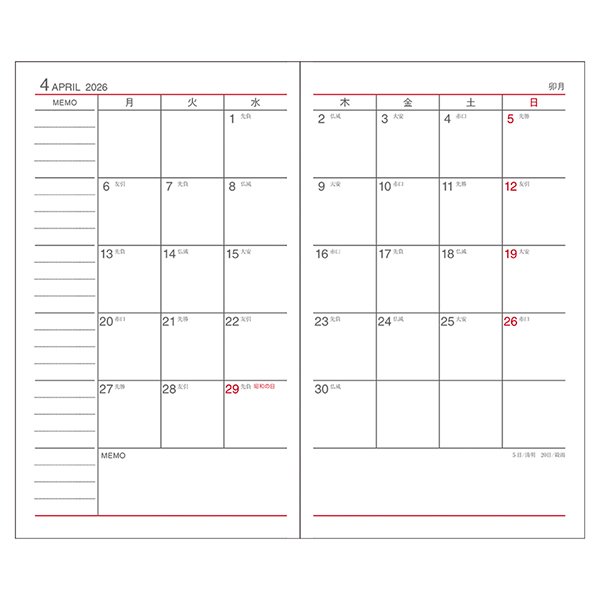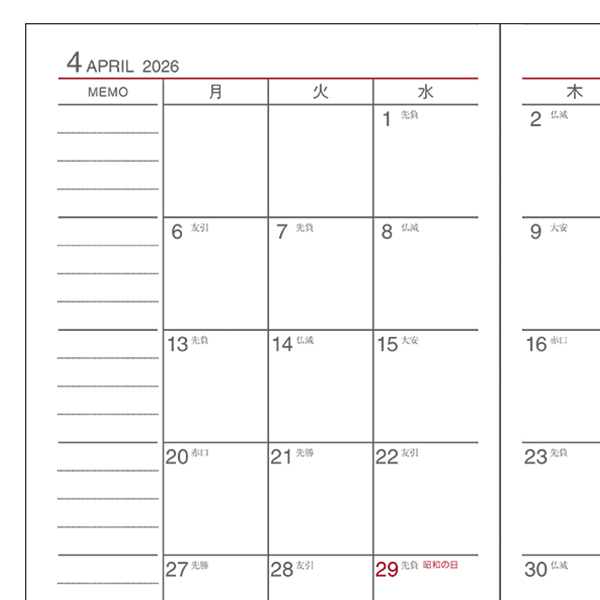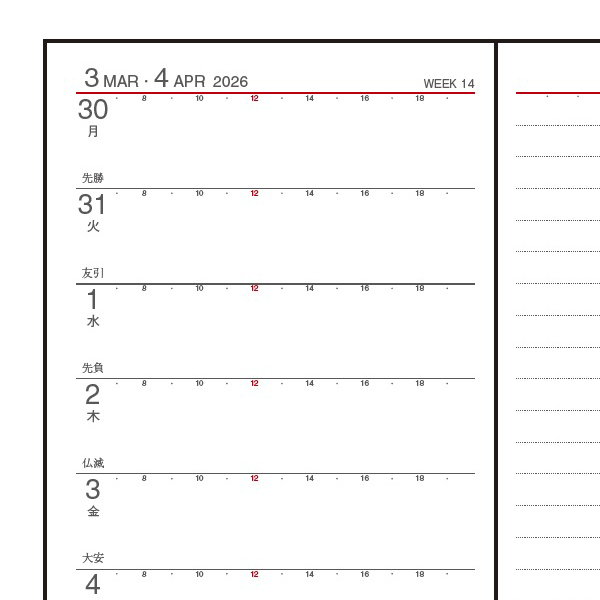 ざっくりと予定を把握したい方やフリースペースにメモを取りたい方におすすめです。