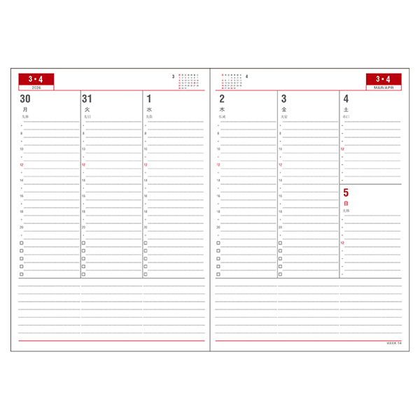 ◆週間予定表(2026年3月から2027年3月)