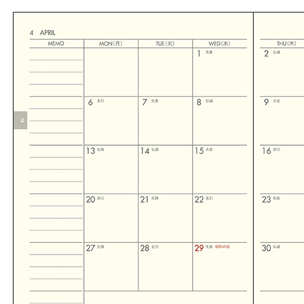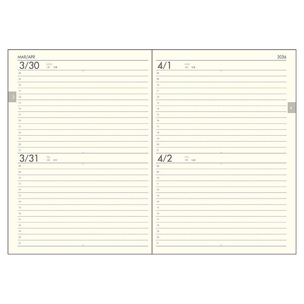 ◆見開き4日予定表(2026年4月から2027年3月)