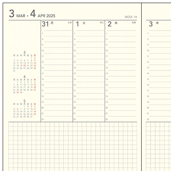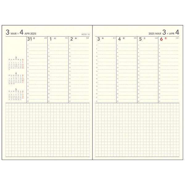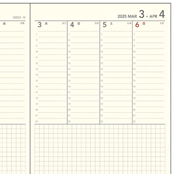 1週間の予定を時間刻みで書き込めるバーチカルレイアウトです。