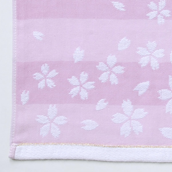 日本を代表する花「桜」をモチーフに今治の特徴である先染めのジャガードを希少な織り方「2紋体ガーゼ」で丁寧に織り上げました。