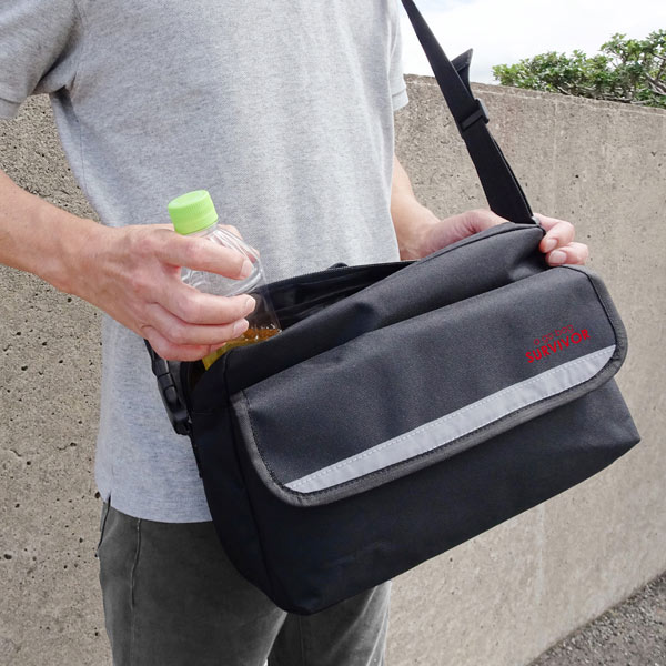 暗い場所でライトが当たると反射して光ってくれる反射板がバッグに取り付けられているため、暗所でも安心です。
