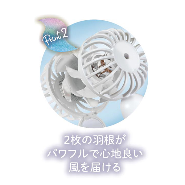 前後の羽根が反対方向に回転し、直進性の高いパワフルな風を発生させます。