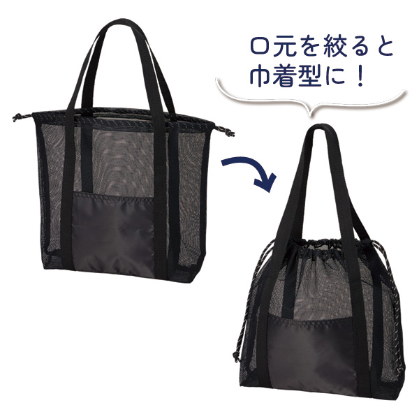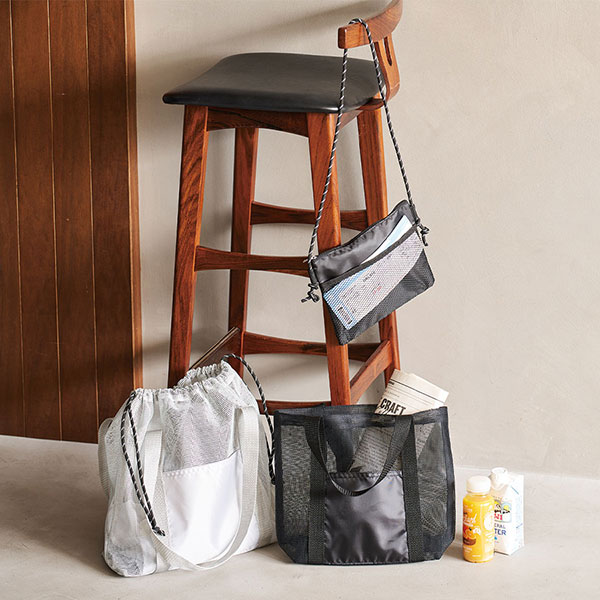 (上)121345 メッシュポケットサコッシュ、(左下)当商品、(右下)121343 メッシュライントート(M)