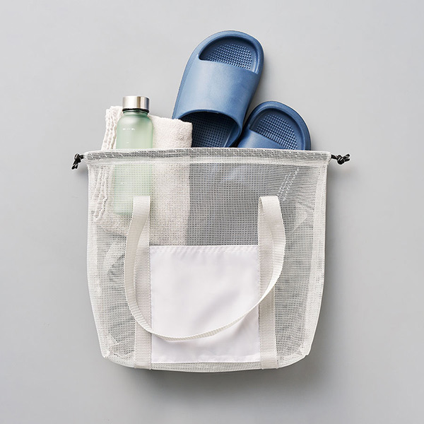 Lサイズはフェイスタオルやビーチサンダルなどを入れて水場のレジャーシーンやスパでの使用におすすめです。