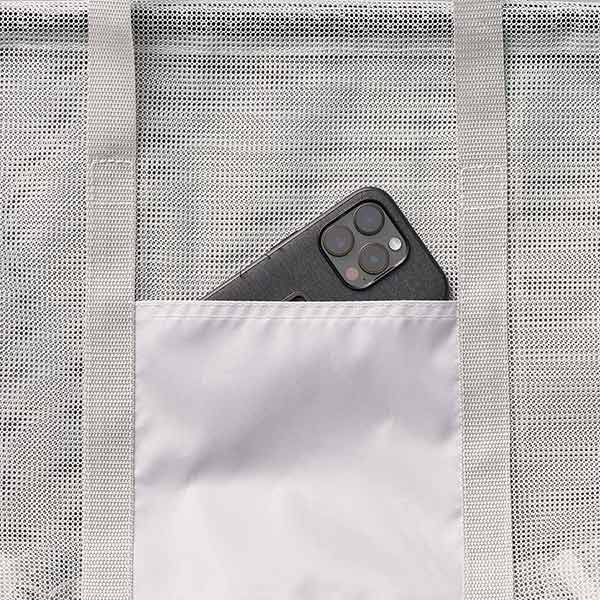 外ポケット付きでスマホなどをいれておくのに便利な仕様です。