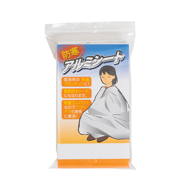 保温ブランケットや簡易防水シートとして使用できる便利な防災グッズです。