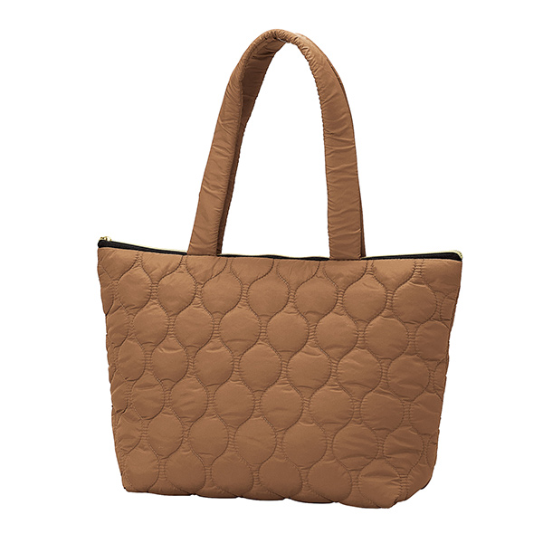 軽量で肩掛けもでき、つかいやすいキルティングトートです。