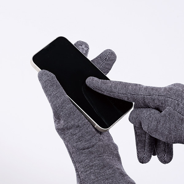 親指と人差し指の刺しゅう部分がタッチパネルに対応しているため、寒い秋冬のスマホ操作中に便利です。