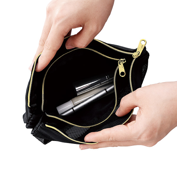 中身が分かりやすいメッシュ素材&4つの収納ポケットでジャンルごとに小物の整理が可能です。