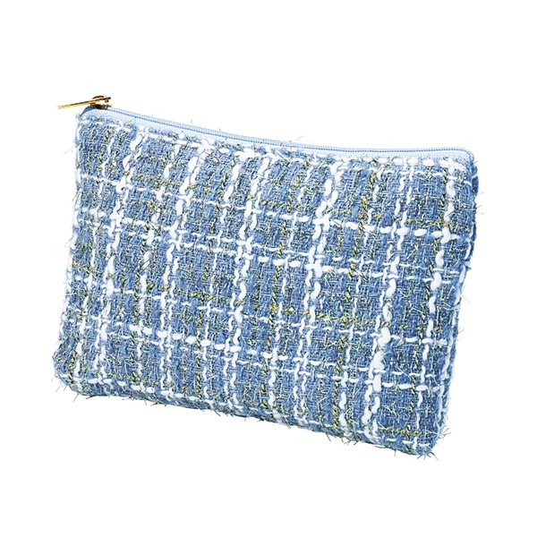 落ち着いたブルーのツイード素材とゴールドのラメのキラキラ感が特別な華やかさを演出します。
