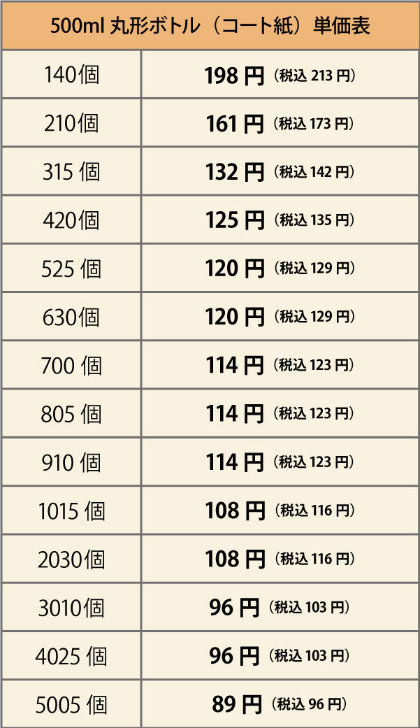 上記価格はラベル印刷代込みの価格です。数量により割引いたします。