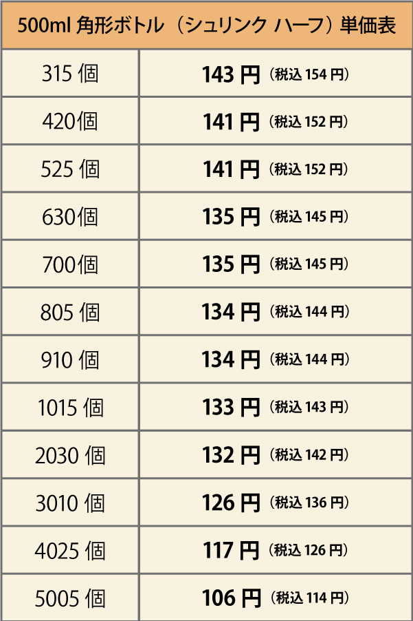 上記価格はラベル印刷代込みの価格です。数量により割引いたします。
