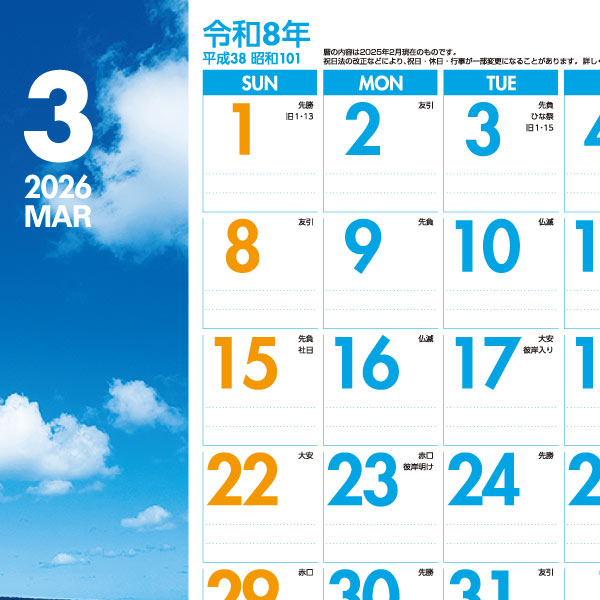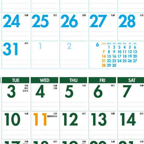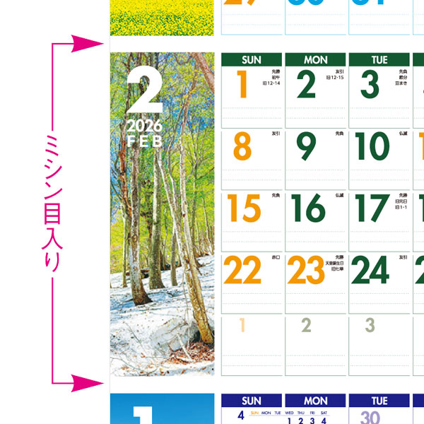 ミシン目入りで常に2ヶ月先の予定まで確認できスケジュール管理に役立ちます。