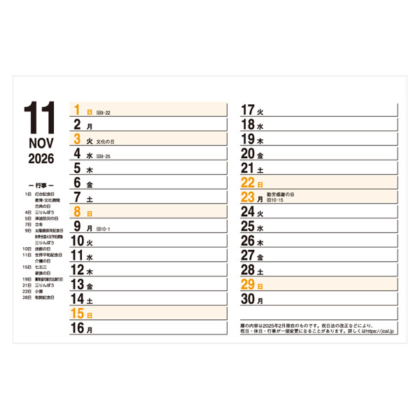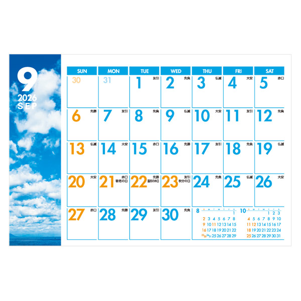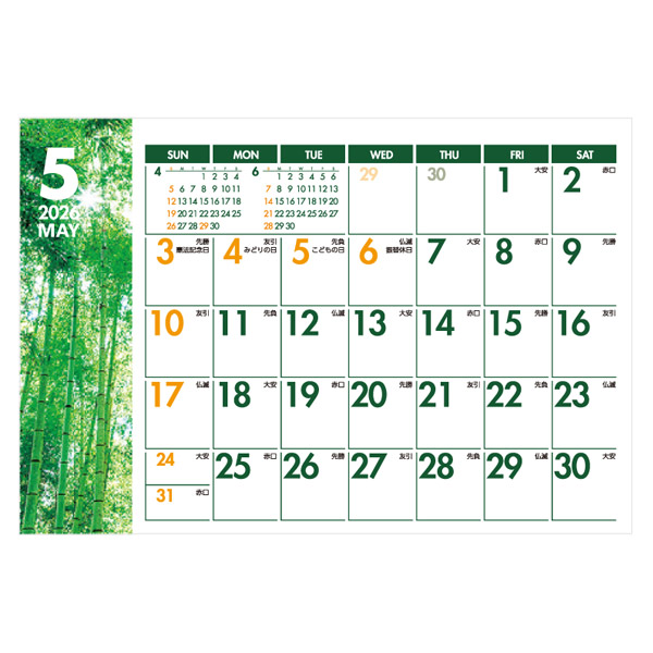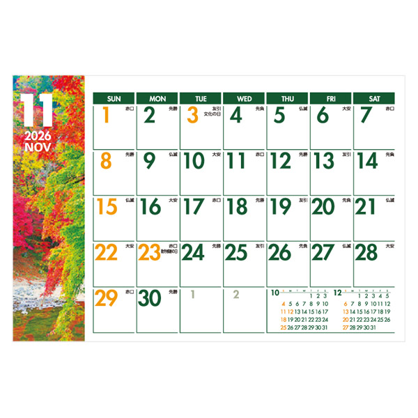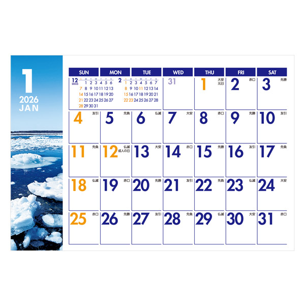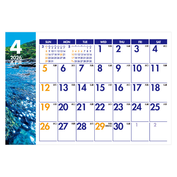 メモスペースをしっかりと確保した、写真入りの卓上カレンダーです。