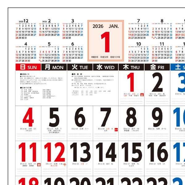 壁掛けカレンダーの金具部分を使用しない「ホットメルト製本(紙製本)」。