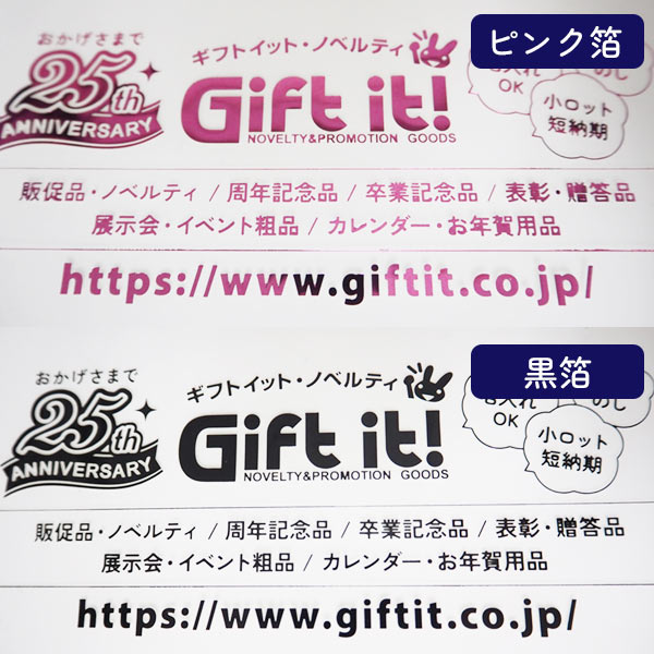 | 可能色数: | 1色(金・銀・赤・青・緑・水色・ピンク・白・黒の全9色よりお選びください。) |