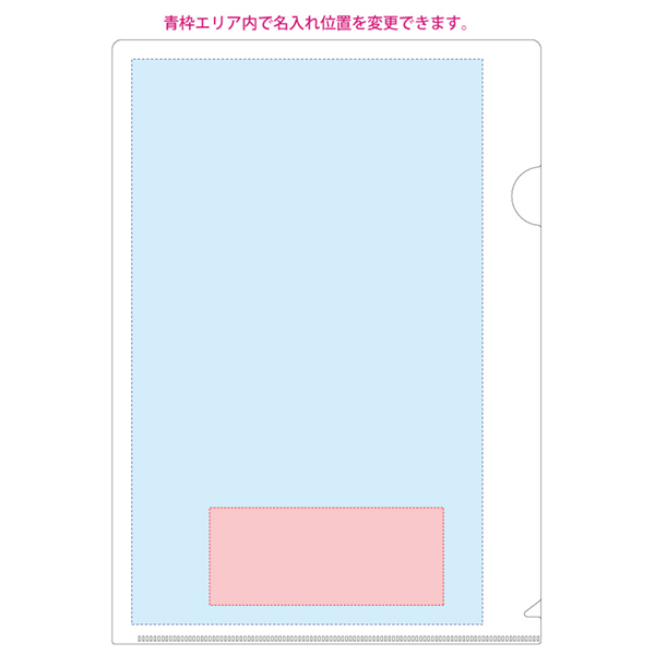 名入れ位置(青枠の印刷可能エリア内であれば、基本の位置以外でも名入れが可能です。)