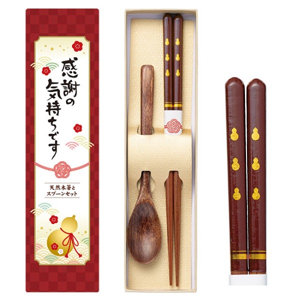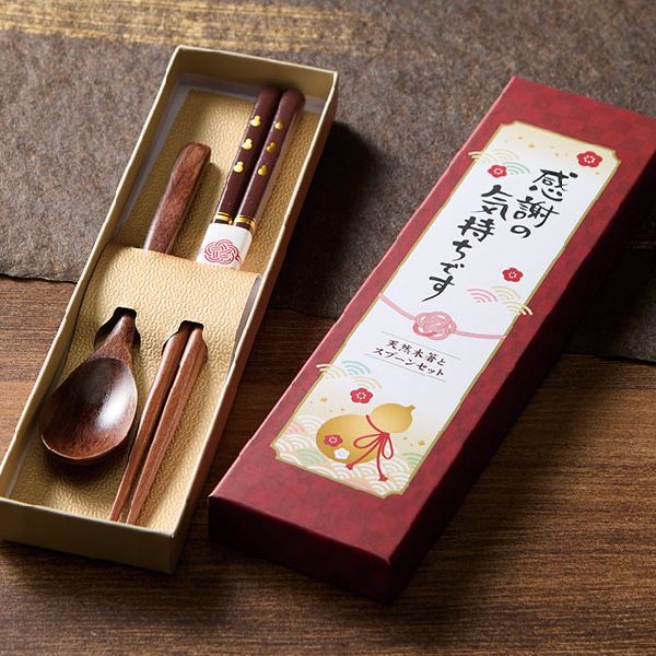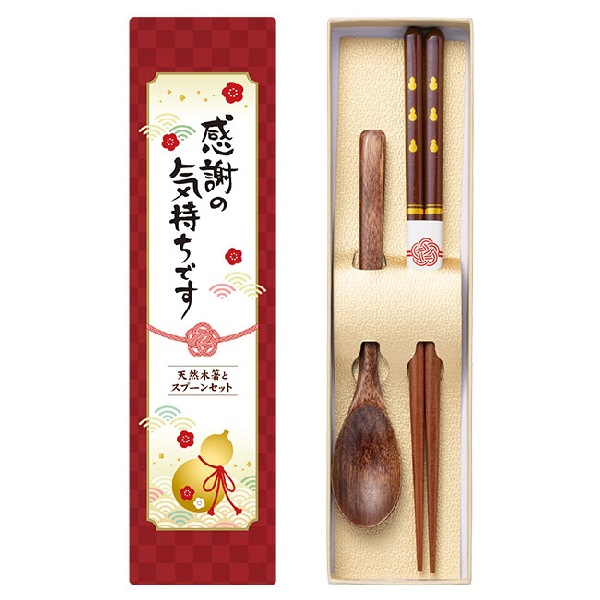 品番:121708 感謝の気持ちです 天然木箸とスプーンセット