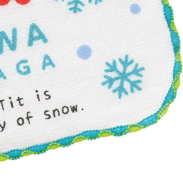 ハンカチ表面には、雪景色の中で身を寄せ合う3羽のシマエナガをデザインしました。