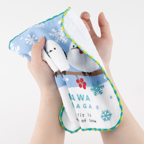 品番:121711 もふかわシマエナガ 無撚糸ガーゼハンカチ