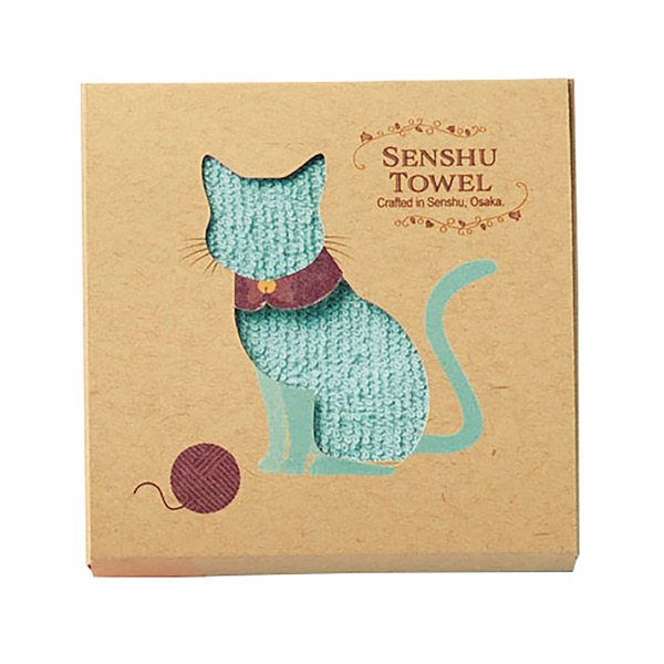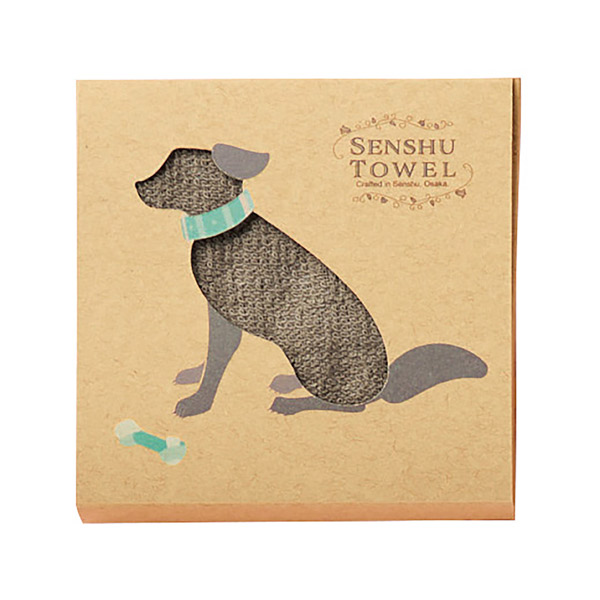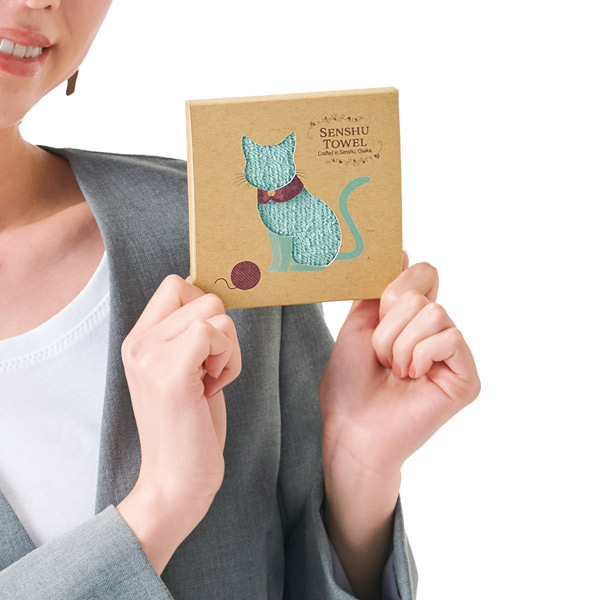 犬と猫、それぞれのシルエットを型抜きした箱からハンドタオルがチラ見え。