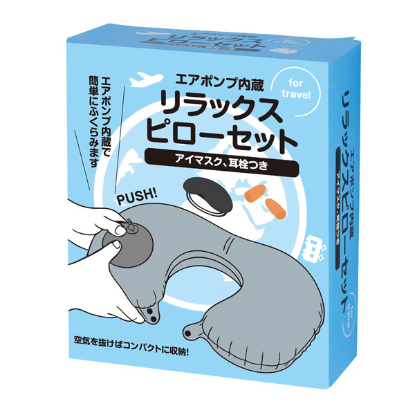 - ■材質: ピロー/PVC・TPU、アイマスク/ポリエステル・ゴム、耳栓/低反発ウレタン