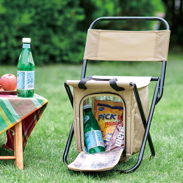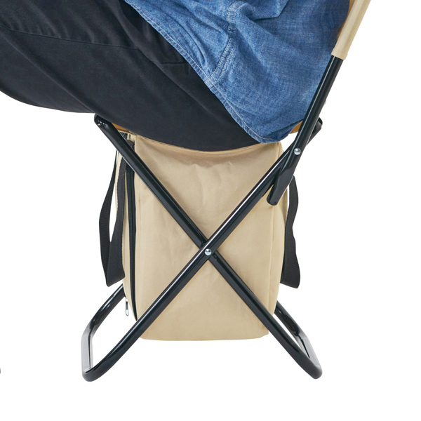缶やペットボトル、パウチ飲料などを入れておける便利な折りたたみチェアです。