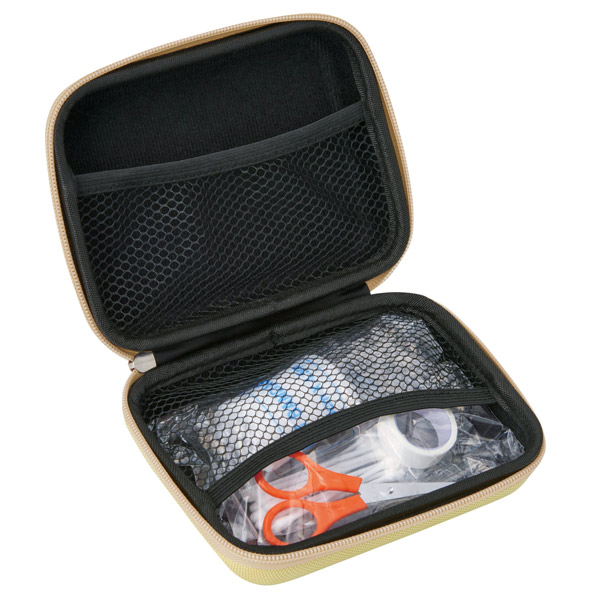 - ■材質: ケース/ポリエステル・ナイロン・EVA樹脂、綿棒/脱脂綿・ポリプロピレン、サージカルテープ/ポリエステル、PBT包帯/ポリブチレンテレフタレート、ハサミ/ステンレス・ポリプロピレン