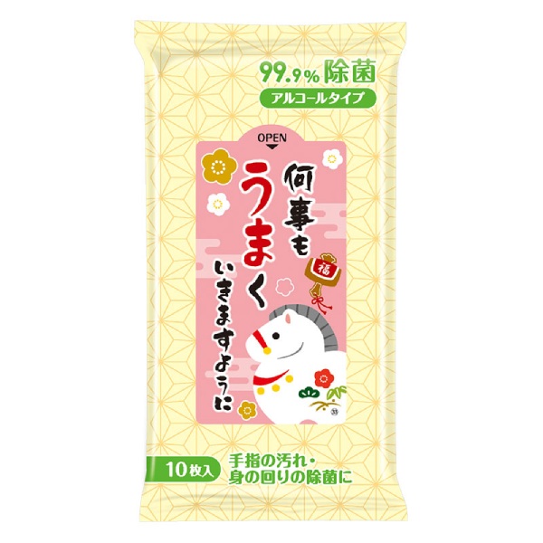 年末年始にぴったりな縁起の良いお手渡し品として、除菌ウェットティッシュ(10枚入り)はいかがでしょうか?