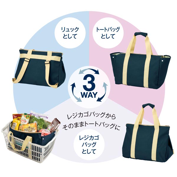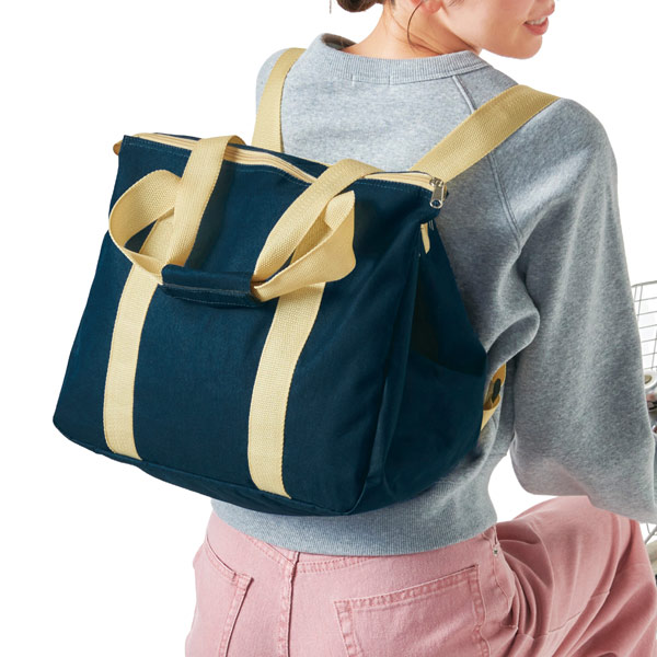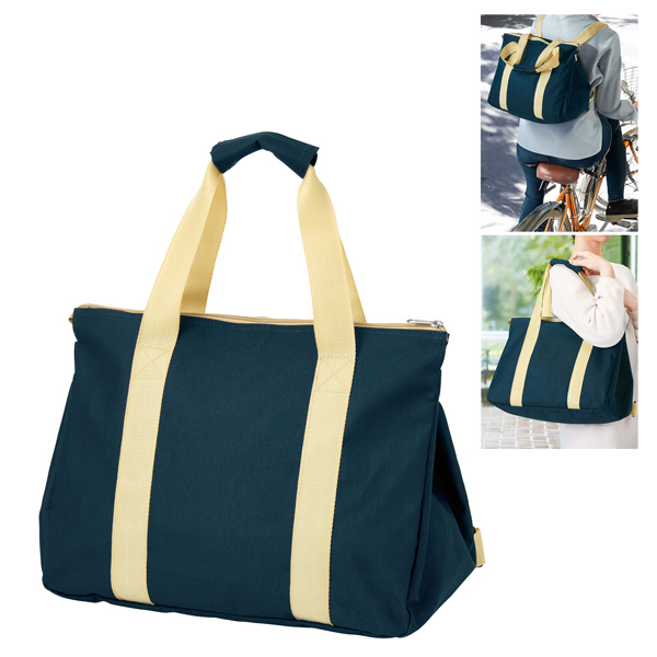 自転車の前かごに入りきらなくても、リュック仕様なら楽々持ち帰れます。