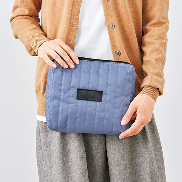 プレート(タグ)に名入れOK!キルト感がオシャレなポーチ。